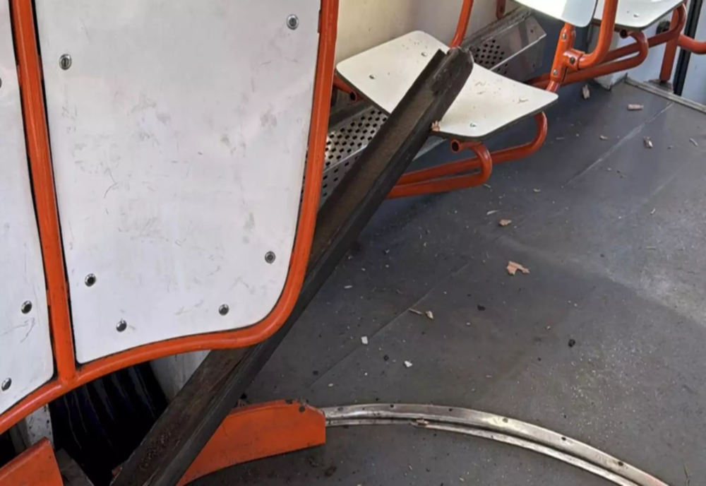 Incident șocant pe linia tramvaiului 16 al STB. O bucată de șină a străpuns ca o ȚEAPĂ podeaua și s-a oprit într-un scaun. Din fericire, niciun pasager nu stătea pe scaunul respectiv, fiind astfel evitat un potențial accident cu urmări grave. În zona în care s-a produs accidentul, bulevardul Dimitrie Pomeiu, starea căii de rulare a tramvaielor este deplorabilă.