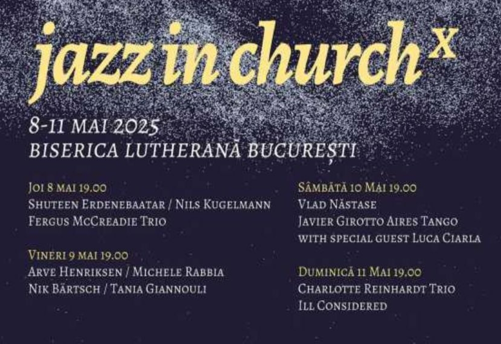 Artistul elvețian Nik Bartsch și artista greacă Tania Giannouli vor fi prezenți la cea de-a zecea ediție a festivalului Jazz in Church, care revine la Biserica Lutherană din București între 8 și 11 mai.